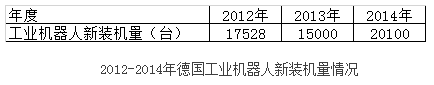 2012-2014年德國工業(yè)機(jī)器人新裝機(jī)量情況