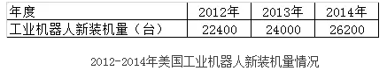 2012-2014年美國工業(yè)機(jī)器人新裝機(jī)量情況