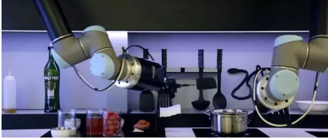 MoleyRobotics機器人廚房本質(zhì)上是兩個非常昂貴的機械手臂,同時還配備了爐灶、烤箱以及各種廚具,運行ROS機器人系統(tǒng),可以通過房間內(nèi)的動作捕捉攝像頭記錄人類廚師的操作,并進行采樣及效仿,從而實現(xiàn)精確的烹飪體驗,它能制作出2000多種不同的菜品,還能讓專業(yè)大廚和廚藝愛好者自己創(chuàng)造新的美食制作程序,為用戶提供私人訂制的饕餮盛宴。