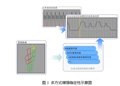 (1)速度自適應:實際應用中,存在很多不規則運動, 驅控一體系統提出了一個自適應速度控制隊列模型,通過對各種約束條件的判斷來計算出一個合理的速度銜接值,從而無需做減速也能實現速度連貫。