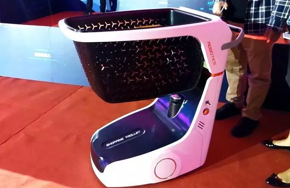 這一只則是針對超市客戶推出的導購機器人,看上去就是個特別高科技的購物車有木有?
