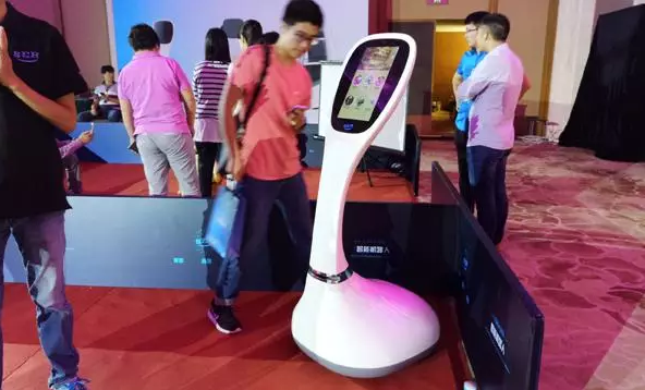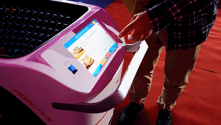 比如這個瘦高個是個領位機器人,目標是替代掉餐廳門口的領位員的工作,顧客只要站在它面前,就可以瀏覽菜單,確定用餐以后可以直接跟著它走到空位前。