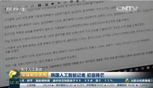 而今天韓國的這位人工智能記者在每天股市收盤時,基于韓國證券交易所的數(shù)據(jù),0.3秒就可寫出一篇股市行情的新聞報道。