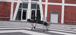 這只機(jī)器狗還有一個(gè)開門的本領(lǐng),前腿一蹬,后腿一掛,門就打開了。它蹦蹦跳跳進(jìn)入房間的樣子,興奮得和真的小狗一樣可愛。