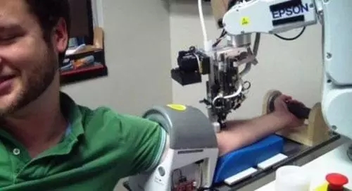 智能無人穿刺采血機器人是近日舉辦的阿里巴巴諸神之戰全球創客大賽上海賽區決賽上,來自上海邁鵲醫用機器人技術有限公司創始人之一劉子忠的參賽項目。該機器人主要采用智能交互技術、智能生物識別技術,同時結合智能導航控制技術再加上機器人自動穿刺技術,可實現比人眼更清楚、比人手操作更準確的全自動無人值守穿刺采血工作。劉子忠說,目前我國千人占有護士數量排名世界倒數第六,引領穿刺采血進入智能機器人時代,將改變人工盲刺為精準可視無人穿刺,成功率高達99%,可實現自動化、標準化、精準化,同時也可以把護士從高頻、高難、高危的工作中解脫出來,實現醫患隔離。