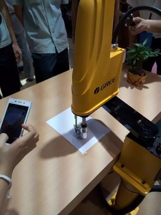 前不久在裝洽會現場,格力推出了一款會畫畫寫字的機器人,據悉,這位機器人是格力自主研發的S401水平多關節機器人,具有結構緊湊,體積小巧,安裝靈活等特點,極大地節省了生產空間和成本。更為重要的是,它精度高,穩定性強,同時在速度上響應快,比一般關節式機器人的速度快數倍,最適用于平面定位、垂直裝配的作業,可廣泛用于PCB涂膠、遙控器裝配等電子零部件等勞動密集型行業。