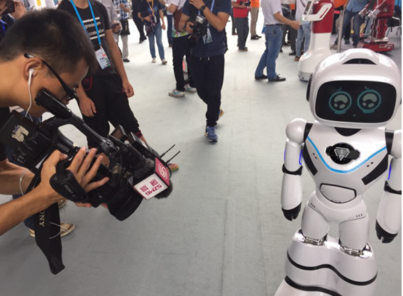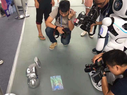 各路記者長槍短炮爭相采訪“紅人”Y20機(jī)器人