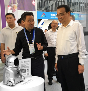 總理李克強(qiáng)參觀位于硬蛋空間的小勇機(jī)器人展臺(tái)