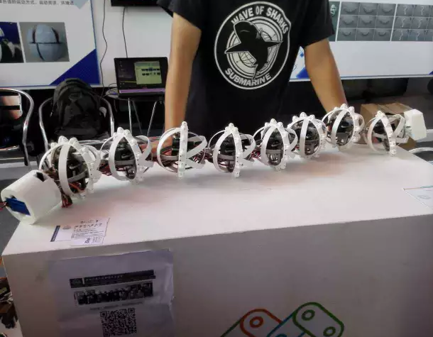 以行星表面進行探測、采樣為應用背景研制的仿生蛇形機器人,是由哈爾濱工業大學深圳研究院研發的。該款機器人具有20個運動自由度,無論是外形還是運動方式上都采用模擬生物蛇的設計。可以通過遠程操作,適應復雜的行星表面環境,也能穿越狹窄的空間,執行探測任務。