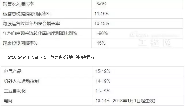 2015-2020年各事業部運營息稅攤銷前利潤率目標