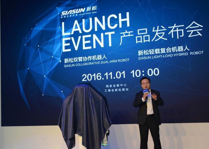 會上,眾多媒體到訪,無疑,大家都對這次的新品充滿好奇。此次,新松一連推出了三款新品,分別是雙臂協作機器人、柔性輕載復合機器人、室內清掃機器人。