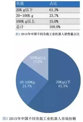 從負載來看,2015年中國所銷售的工業機器人中,以小型負載工業機器人為主,中型負載和大型負載工業機器人相對較少。相較小型負載機器人而言,中大型負載機器人尤其是大型負載機器人主要用于大型物件的搬運,需求量要遠小于應用更廣價格更低的小型負載機器人。