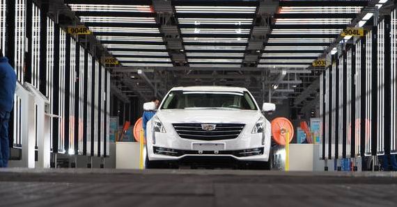 在位于上海金橋的上汽通用凱迪拉克工廠,總成車間里一派繁忙景象。