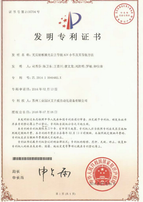 關于艾吉威:蘇州艾吉威機器人有限公司是一家專注于AGV智能物流系統的高新技術企業。公司產品廣泛應用在汽車、家電電子、機械、自動化、服裝、醫療器械和衛浴等行業。公司2004年開啟無反射板激光自主導航AGV系統研發,全球首創無反射板激光自主導航技術,研制成功并上市無反射板激光自主導航叉車AGV智能輸送系統和智能倉儲系統。并已大量應用在三星集團、國家電網、膳魔師(全球第一保溫杯制造商)、巨石集團(亞洲領先玻璃纖維制造商)、貝斯特(國內增壓葉輪第一制造商)、中天集團……。無反射板激光自主導航叉車AGV是國內外開創性的創新產品,已取得國家發明專利和高新技術產品認證,且申請了國際PCT專利項目。公司憑借卓越的研發能力,榮膺科技領軍企業,取得多項AGV及AGV系統技術專利(2014年后專利申請量全國第一)。公司法人董事長司秀芬博士因此獲得蘇州科技領軍人才榮譽獎項。