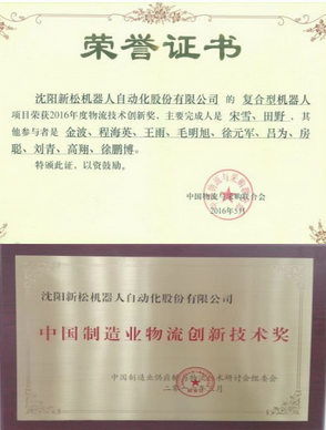 產品榮獲中國物流與采購聯合會頒發的《2016年度物流技術創新獎》
