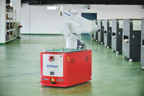 使用AGV輸送物料,利用車載機械手將物料放置指定工序、工位。