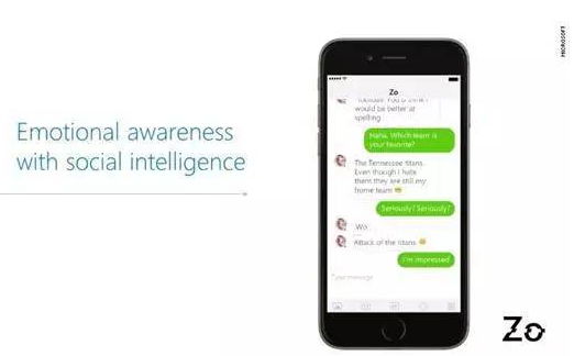 Zo被定義為一個22歲的女生的角色,Shum也嘗試和她討論了一些關于足球的話題,事實證明表現不錯。在Kik上,已經有超過115000人與Zo進行過對話了。而且最長的一次對話時間總共持續了超過9個小時。