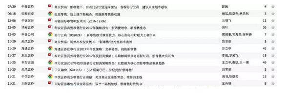 國內的分析師簡直就是對“新零售”這個概念一片喜聞樂見的樣子,你看一下下面這一溜的研究報告標題,好好感受一下分析師的心情。