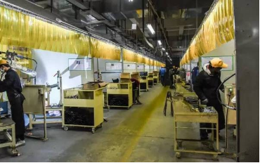 自動化生產線里還是需要工人來支援的,他們主要的職責是將組件安裝到模具上,讓機械臂焊接,工作較輕松。