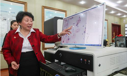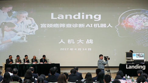 4月14日,在武漢舉辦的2017聯合國醫療衛生產品采購研討會上,一臺由海歸細胞病理學專家孫小蓉博士團隊研制的人工智能宮頸癌診斷機人“Landing”亮相。
