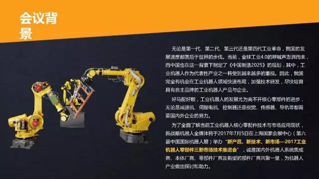核心提示: 2017工業機器人零配件三新市場推進會將于2017年7月5日在上海國際機器人展會上同期舉行。