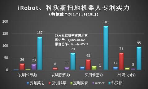 其三,與科沃斯相比,深圳智意、蘇州萊寶、深圳銀星等三家企業(yè)專利實(shí)力較弱,iRobot的勝訴概率更大。