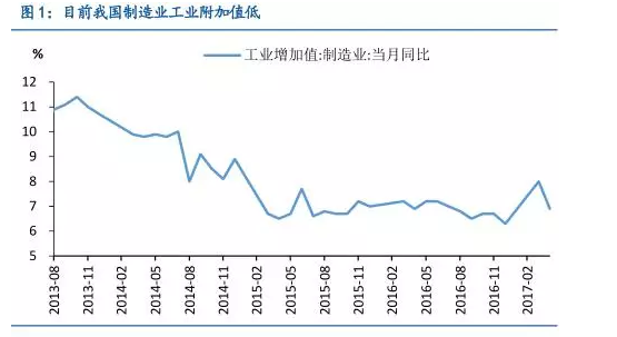 供給側改革初現成果,制造業升級正當時。自2016年中央經濟工作會議明確提出深化供給側結構性改革以來,推進“三去一降一補”任務已有實質性進展,產能過剩、庫存過大、杠桿偏高、成本高企、短板約束等重大結構性失衡問題均有所破解,為經濟轉型升級掃清障礙、蓄積動能。