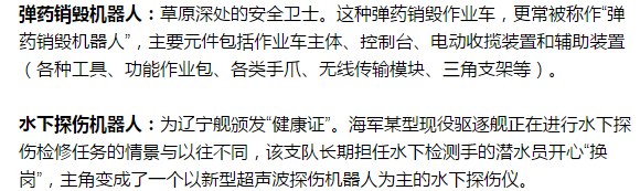 外骨骼系統:古代士兵的盔甲就是最早的外骨骼,如今,結合了機械電子、控制、生物、傳感、信息融合、材料等技術的外骨骼技術得到快速發展。在戰場上,一支行軍時速 20 千米,能夠在夜間精確定位,負載100 千克以上各種信息化裝備的外骨骼機器人部隊投入戰斗,而對手是傳統意義上的步兵,這將會獲得怎樣的戰場優勢。這些設想曾一度在美國的科幻大片中上演,也一步步地由科幻走進現實。