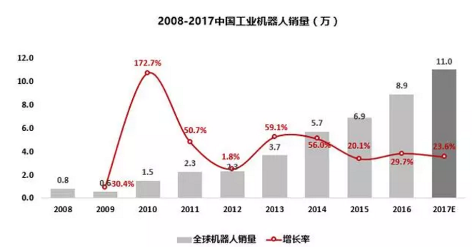 將于2017年10月1日正式實(shí)施最新《國民經(jīng)濟(jì)行業(yè)分類》中,機(jī)器人制造首次作為獨(dú)立的行業(yè)列入《國民經(jīng)濟(jì)行業(yè)分類》之中,根據(jù)新的分類,工業(yè)機(jī)器人制造與特種作業(yè)機(jī)器人制造兩個(gè)行業(yè)小類,可以說我國的工業(yè)機(jī)器人產(chǎn)業(yè)已經(jīng)走向快車道的規(guī)模化發(fā)展階段。筆者日前對(duì)中國工業(yè)機(jī)器人的發(fā)展現(xiàn)狀進(jìn)行了梳理。