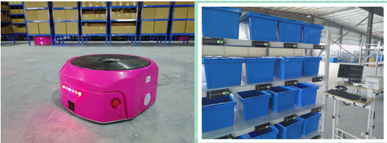 - 利用“貨架到人”的邏輯,節省了工人行走的時間,大幅提升其揀貨時間,從而提升分揀員單人揀貨效率。在訂單量相等的情況下,降低了人工成本2/3
