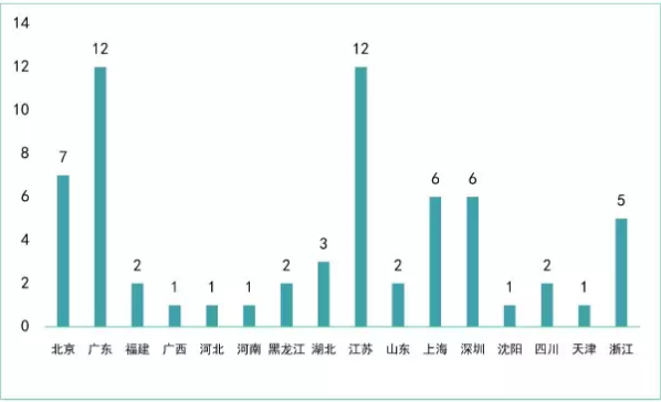 圖4 我國新三板機器人企業(yè)地區(qū)分布情況(單位:家)