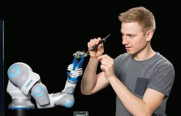 BionicCobot可以進行精細調節,動作可充滿力量、敏捷,或敏感柔和、一觸即收;因此該系統即使與人發生碰撞也不會危及人身安全。這種特性的實現要歸功于Festo Motion Terminal(數字控制終端),這是一種氣動自動化平臺,在小空間中整合了高精度機械元件、傳感器、復雜的控制和測量技術。