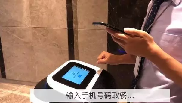 第四步,用戶取餐。找到外賣機(jī)器人后,你只要輸入手機(jī)號,就能完成取餐。