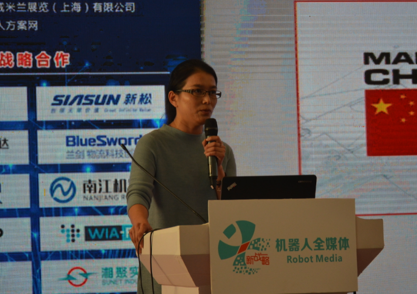 圖: 合肥漢和智能物流科技有限公司總經理陶慧女士發表演講《“任務協同系統”助力智能制造》。核心內容:當自動化產線、智能設備日益增加時,“任務協同”尤為重要。漢和提供的AMS(自動化管理系統)主要解決多設備多信息系統間任務協同問題,同時推出的“任務建模”,可以適應不同項目,不同配送步驟,不同前后任務間的制約關系,高效連接用戶現場所有信息系統和智能設備,提升用戶經濟效益。