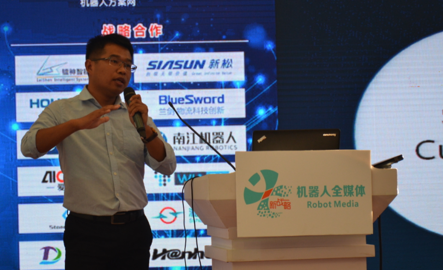 圖:愛啃蘿卜機器人技術(深圳)有限責任公司總經理佘元博先生發表演講“無軌agv將成為倉儲物流中的“新主力”。 核心內容: 目前倉儲方案中有三種模式:立體倉、類kiva和自主導航方案 ,愛啃蘿卜自主導航機器人具備引領導向、自主運輸、智能跟隨三大功能,適用于倉儲、倉庫、工廠、企業內部等應用領域,目前已發布基于第二代AICANS系統的機器人自主移動解決方案。