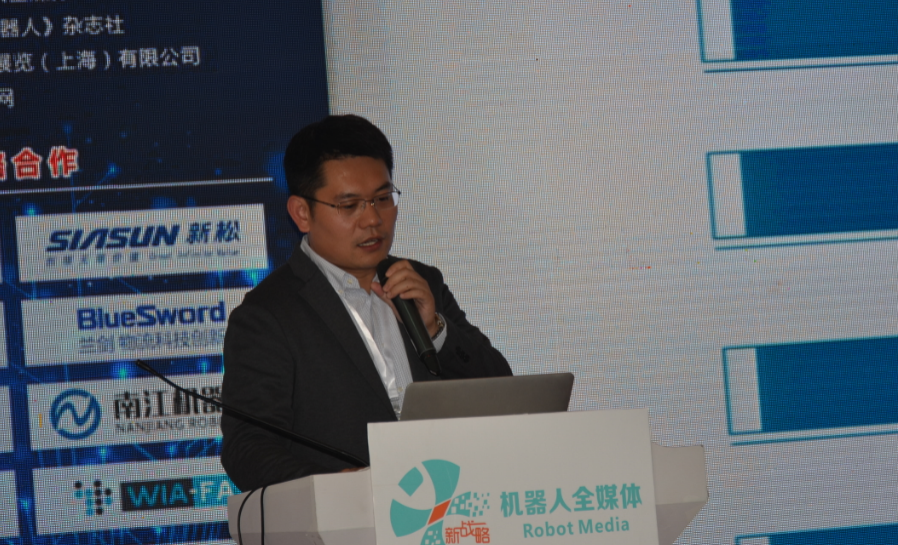 圖:沈陽新松機器人自動化股份有限公司移動機器人BG副總裁王玉鵬先生發表演講“移動機器人(AGV)技術創新與應用”。 核心內容:2017年國內AGV市場較16年銷售額大幅增長,存量和增量市場都在不斷增加。但同時,也存在著諸如價格競爭、標準匱乏、利潤低下等問題。未來國內企業唯有繼續開發新的增量市場、新應用領域、 新應用模式,并完善上下游產業鏈、不斷降低AGV應用成本,共同培育增量市場才能良性發展。新松在移動機器人領域深度耕耘,2017年開設移動機器人BG,未來將不斷創新創造更多優勢產品。
