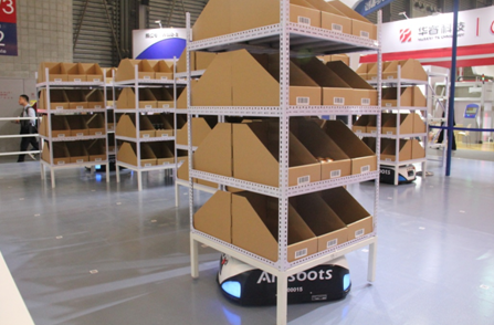 展會現場,新一代艾瑞思智能倉儲機器人靈活地穿梭運行于貨架中,通過模擬訂單生動地展示了艾瑞思機器人智能、精準、穩定、高效的優勢及特點。這也吸引了很多觀眾和應用商蒞臨艾瑞思機器人展臺進行觀摩交流,流連忘返,在深入了解艾瑞思機器人的同時,進一步衡量艾瑞思機器人所能給企業內部物流帶來的價值。