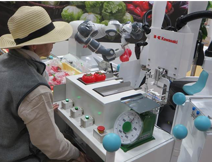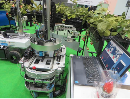 宇都宮大學和i-eat公司展出可協助栽培、采收、選果、包裝草莓的機器人。