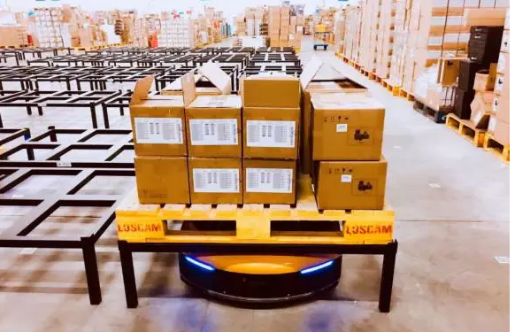 每日出貨量大且SKU多,是電商倉儲的一大特點。以往倉庫的3C整件商品主要依賴電動液壓搬運車來實現搬運,不僅要配置專門的設備與人員,還要在倉庫內規劃行車動線,留足工作區域。機器人與托盤的搭檔,大大提高整件商品的上架效率。同時,根據作業要求的變化隨時增減機器人數量,真正的為倉儲引入了柔性管理。