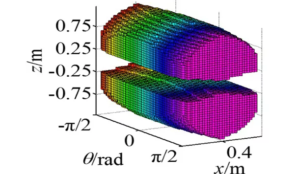 該并聯機器人樣機的每個支鏈采用了一定子兩動子的高精度直線電機作為驅動機構,結構簡單且電機定位精度達到微米級,此外,通過高強度的碳纖維復合材料作為支鏈的主要材料,有效降低了移動件的重量;控制系統采用了ABB的驅動器,通過PowerLink總線進行同步控制;通過基于運動學的離線軌跡規劃算法,該機構的運動學目前該樣機可達到XYZ三個方向的平動及繞Z軸方向的轉動,移動范圍分別是0.3m、1.2m和0.2m,其最大運動速度達到了1.6m/s,末端定位精度約為1mm,繞Z軸方向的轉動可以達到±120°,能夠廣泛應用于柔性化工廠的包裝、分揀等工序,具有很好的應用前景。