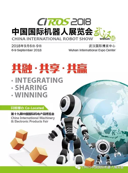 2018年9月6-9日,CIROS2018中國國際機(jī)器人展覽會(huì)(武漢站),我們不見不散!