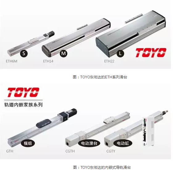 TOYO東佑達公司于2000年在臺灣成立,并先后在深圳、蘇州成立分公司,至今17年的經營時間里,滑臺銷售數量累計超過30萬臺。TOYO東佑達一方面可以為客戶提供標準的滑臺產品(如ETH系列),另一方面力推新產品GTH內嵌式導軌滑臺。