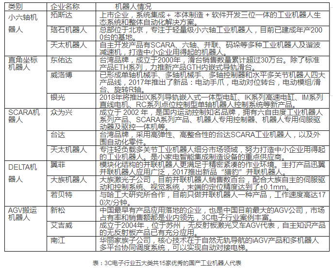 《中國3C電子智造優秀機器人供應商甄選專題》將以中國3C電子行業機器人本體企業為主體,分設小六軸機器人類、直角坐標機器人類、SCARA機器人類、DELTA機器人類、AGV搬運機器人類等五大類(每類3家企業),特別甄選出15家優秀的、有代表性的機器人供應商,為3C電子行業的自動化發展提供更多詳細的資料和依據。