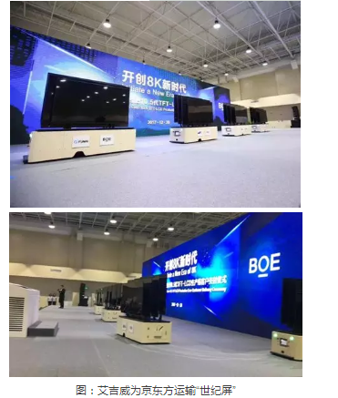 不久前,全球首條最高世代線——BOE(京東方)合肥第10.5代TFTLCD生產線投產,12臺艾吉威AGV小車和艾吉威上位機系統AGVS,根據京東方第10.5代TFTLCD生產線需求設計定制,實現京東方第10.5代TFTLCD智能工廠的智能運輸環節。12臺艾吉威AGV小車負責“世紀屏”生產過程中的物料轉運,半成品運輸,結合AGVS實現物料配送過程的可視化、可追溯、無人化。