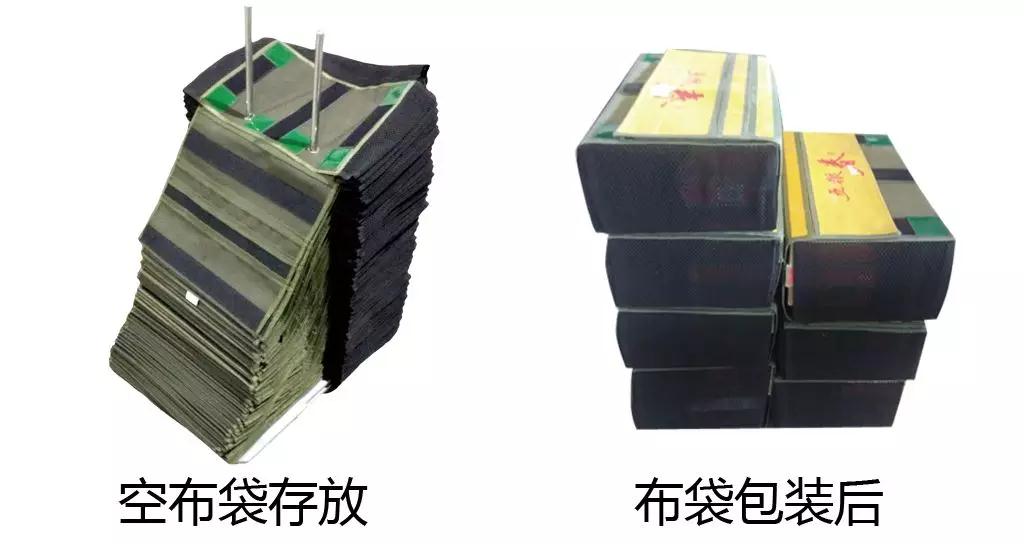 布袋的可伸縮性,保證了包裝后的煙包尺寸和垛煙尺寸基本一致,與塑膜包裝后的膜包尺寸相當。布袋包裝的裝載率等同于塑膜包裝,高于周轉箱包裝50%以上,降低企業物流成本,增加了企業效益。