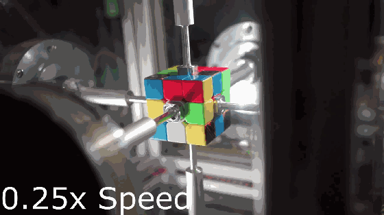 Katz在博客中表示:“這臺機器的速度肯定還能更快,但調整優化的過程非常耗時,因為調試需要通過高速攝像機來完成,一旦出現錯誤,就會將魔方彈飛或破壞機器。通過高速視頻的觀測,每個99度的一動都需要10毫秒時間,時間上這臺機器每隔15毫秒就會移動一次。目前,我們已經達到了身體的極限,但未來還有繼續優化的可能,0.38秒并不是最終的成績。”