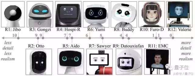 △ 12張機器人臉 | 越往左代表面部線條越簡單抽象,越往右代表越擬人具體