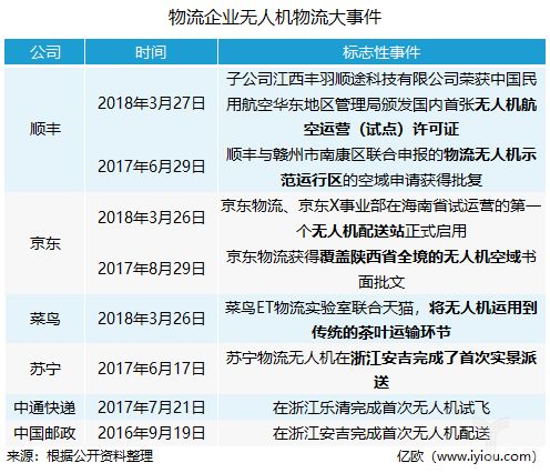 無人機物流在降本增效,提升用戶體驗的優(yōu)勢不可小覷,除順豐外,諸多物流企業(yè)、電商企業(yè)近年來都在積極嘗試與探索物流無人機的運營。