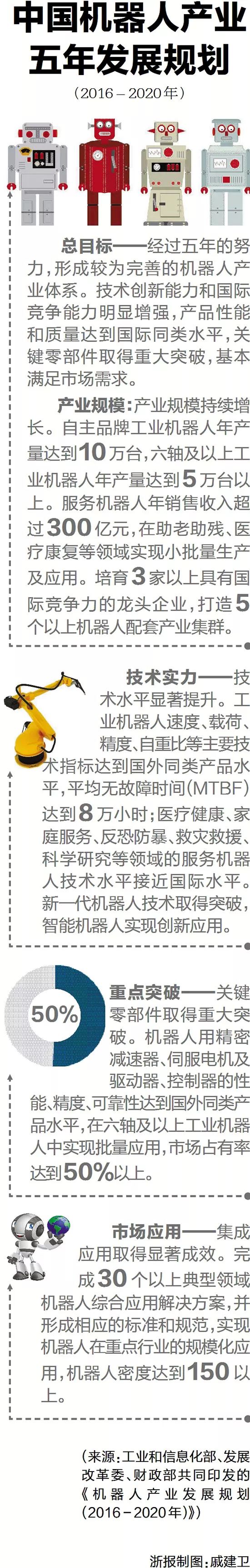 (來源:工業(yè)和信息化部、發(fā)展改革委、財政部共同印發(fā)的《機器人產(chǎn)業(yè)發(fā)展規(guī)劃(2016-2020年)》)浙報制圖:戚建衛(wèi)