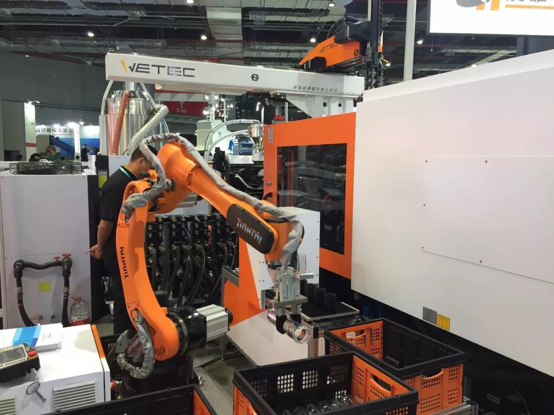 天太機器人攜手戰略合作伙伴震雄&震德亮相上海國際橡塑展,展現了機器人在注塑后端全自動化:自動取料、過程冷卻、缺陷檢測、自動裝箱的最新應用成果與解決方案,助力企業智能化升級改造。而二次注塑和嵌入式注塑,將會是天太未來在塑料行業重點布局的方向。